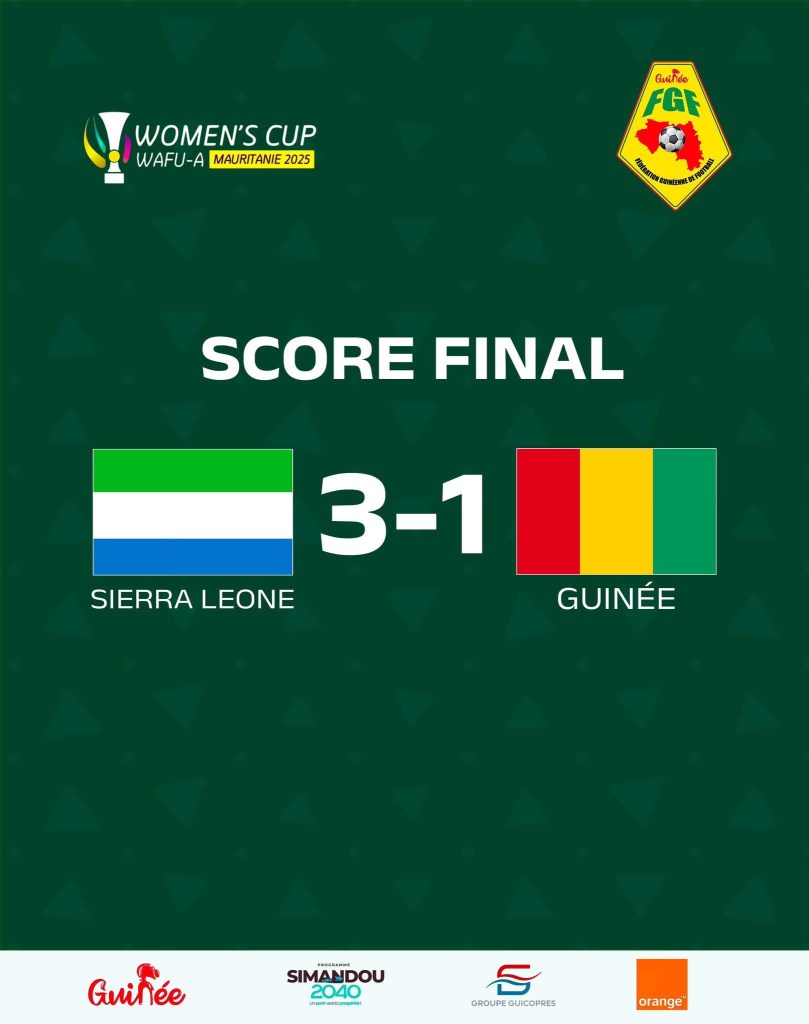 Une entrée en matière difficile face à une solide équipe sénégalaise. Malgré un sursaut tardif avec un but de Kany Sidibé dans le temps additionnel, les Lionnes de la Teranga ont dominé la rencontre. - 24 mai 2025 : Sierra Leone 3 – 1 Guinée