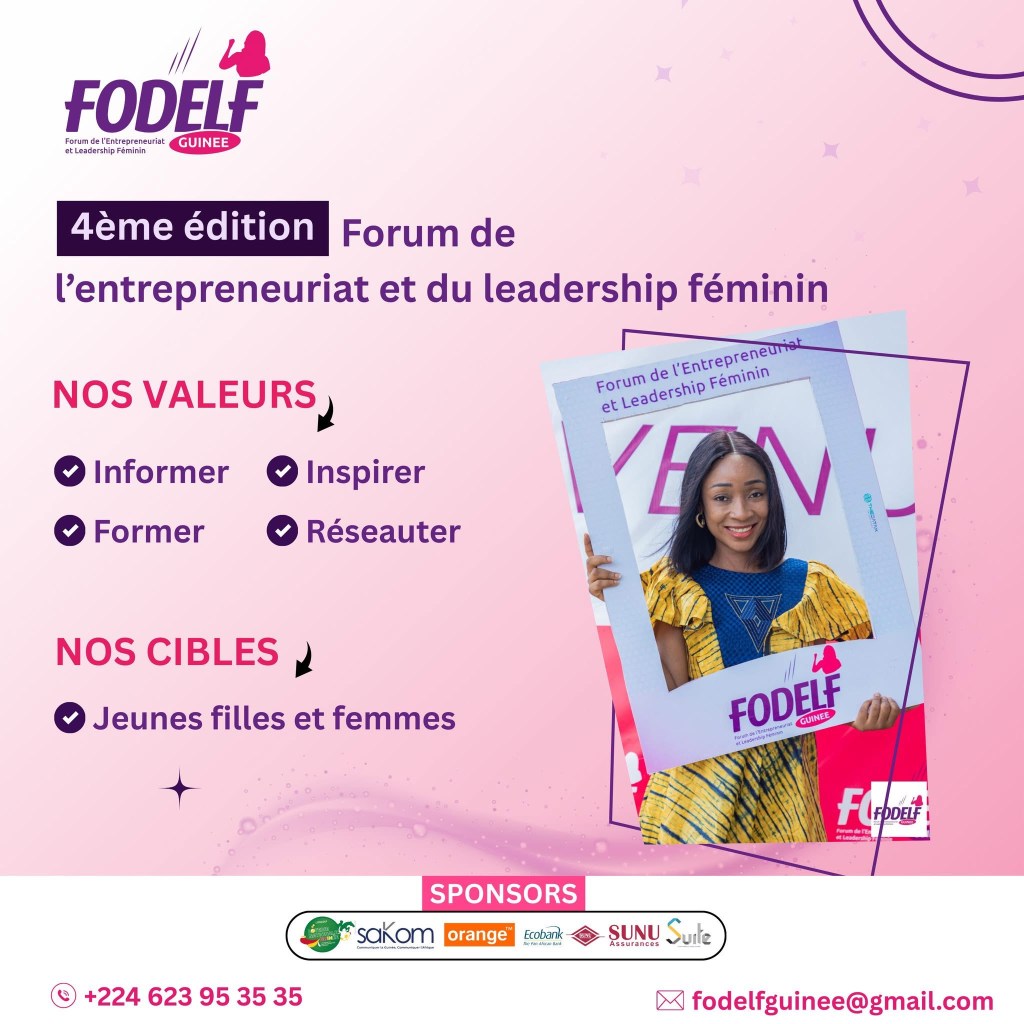 Conakry s’apprête à vibrer au rythme de l’audace, de l’innovation et du leadership féminin. Les 20 et 21 juin 2025, la capitale guinéenne accueillera la 4e édition du Forum de l’Entrepreneuriat et du Leadership Féminin en Guinée (FODELF). Un rendez-vous devenu incontournable pour toutes celles et ceux qui croient en la force transformatrice des femmes dans la construction d’une Guinée prospère, équitable et ambitieuse.