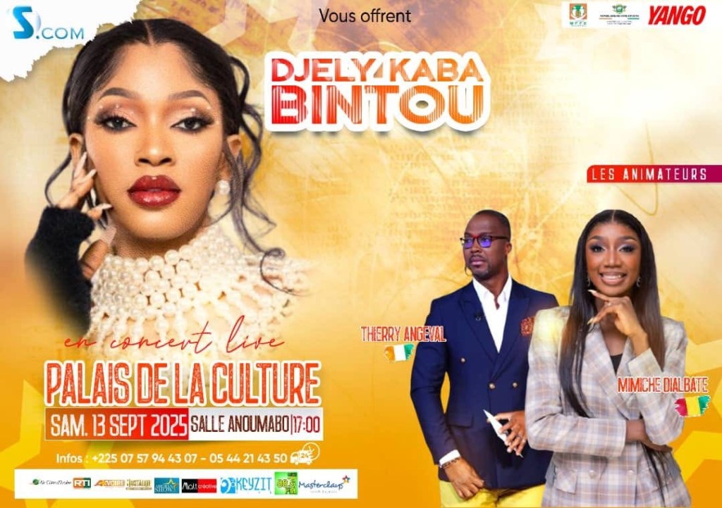 Abidjan – La présentatrice et animatrice guinéenne Mimiche sera aux commandes du grand concert de Djelykaba-Bintou, prévu ce samedi 13 septembre au Palais de la Culture d’Abidjan. Elle partagera donc la scène avec Thierry Angeval, artiste guinéo-ivoirien, pour cette soirée qui s’annonce riche en émotions et en musique.