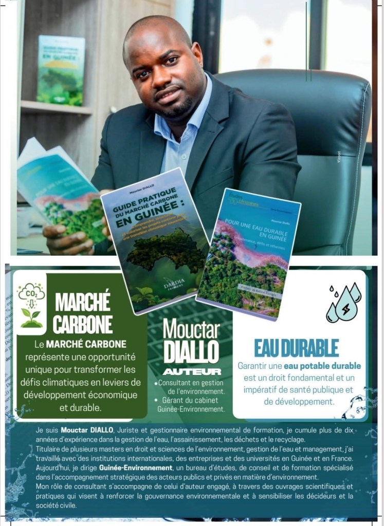 Mouctar Diallo a annoncé la tenue de la cérémonie officielle de dédicace de ses deux ouvrages : « Guide pratique du marché carbone en Guinée » et « Pour une eau durable en Guinée ». L’événement se déroulera le 25 octobre à 14h00 à l’Université de Nouvelles Connaissances (UNC).