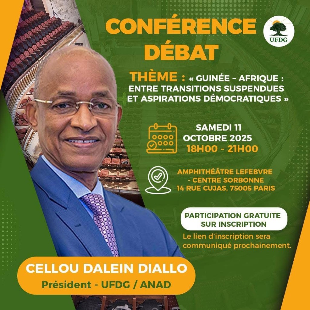 À l’invitation de l’Association de Sciences Po pour l’Afrique (ASPA), de la Sorbonne African Business Club (SABC) et des Étudiants de la Sorbonne pour le Monde Africain (ESMA), Cellou Dallein Diallo animera ce samedi 11 octobre 2025 à 18h00, à l’amphithéâtre Lefebvre, une conférence sur le thème : « Transitions politiques et aspirations démocratiques en Afrique ».
