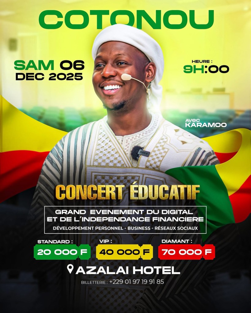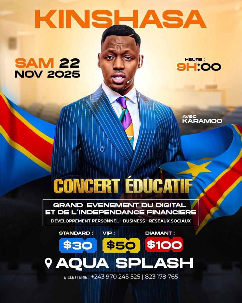 Conakry, octobre 2025 – Après plusieurs mois de tournée à travers l’Afrique, le conférencier et formateur Karamoo s’apprête à clôturer son année 2025 avec deux grands Concerts éducatifs prévus à Kinshasa (RDC) et Cotonou (Bénin).